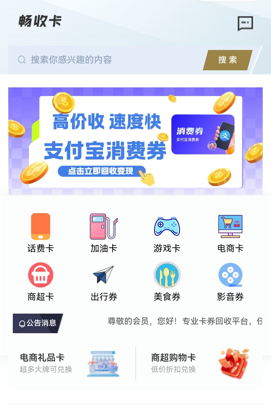 第1步:搜索畅收卡公众号。你可以借助微信等常用的搜索工具,在搜索栏中准确输入“畅收卡公众号”,然后从搜索结果中找到官方认证的渠道,点击进入回收页面。这一步非常关键,确保你进入的是正规的官方渠道,能够保障你的个人信息和卡券信息安全。